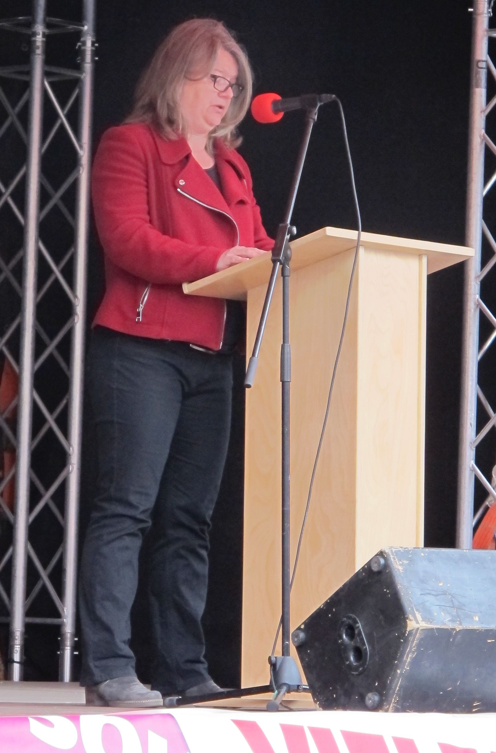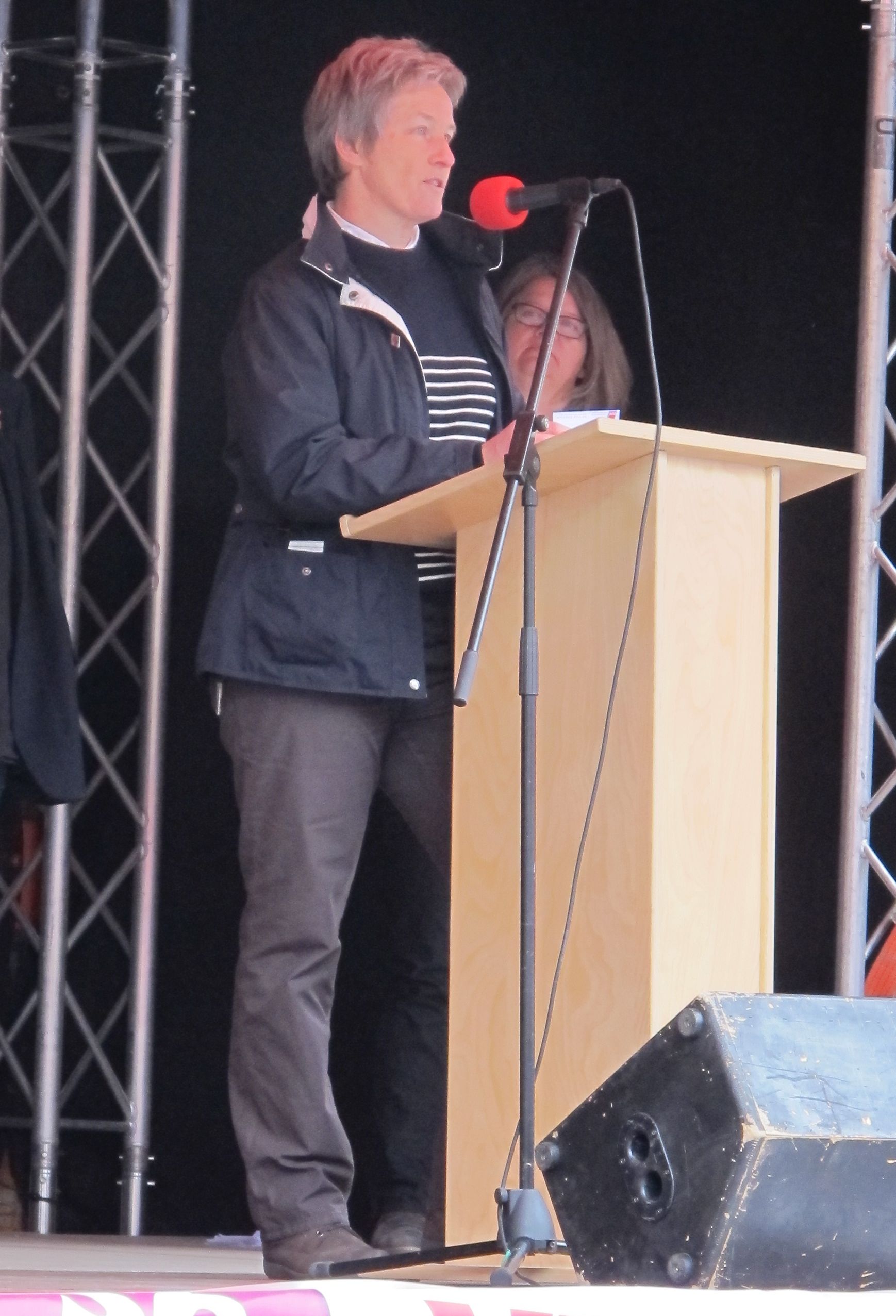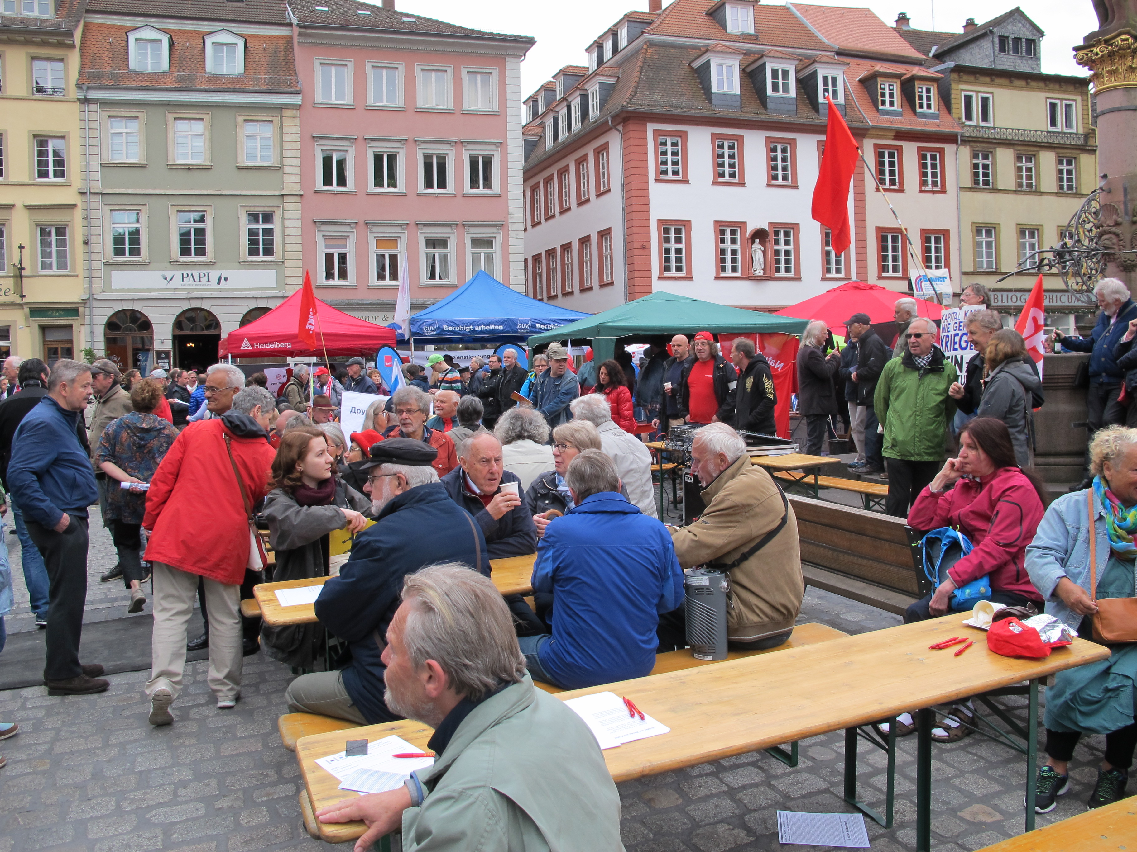 Die Hauptrednerin Claudia Dunst von der Eisenbahn- und Verkehrsgewerkschaft (EVG) erklärte, die Gewerkschaften kämpften nicht nur für die Arbeitnehmerrechte in Heidelberg, der Region und der Welt. Sie seien auch Experten für gesellschaftlichen Zusammenhalt. Der Versuch der Alternative für Deutschland, sich an den Betriebsratswahlen zu beteiligen, sei kläglich gescheitert.