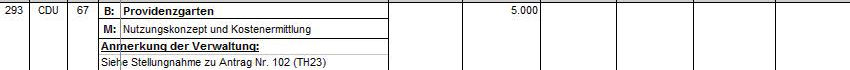 Tagesordnungspunkt "Providenzgarten" im Gemeinderat
