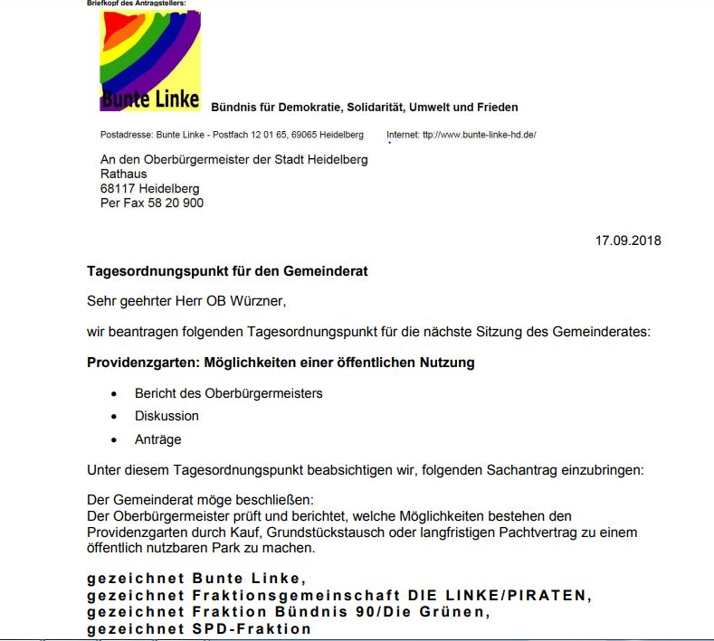Bunte Linke: Providenzgarten - Der Kirche klares Signal geben