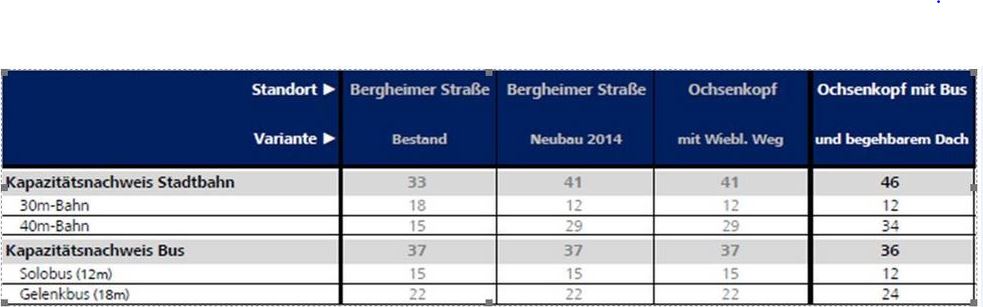 a) Altstandort ohne Alte Feuerwache: 41 Straßenbahnen, 37 Busse - b) Altstandort mit Alter Feuerwache: 46 Straßenbahnen, ca. 50 Busse