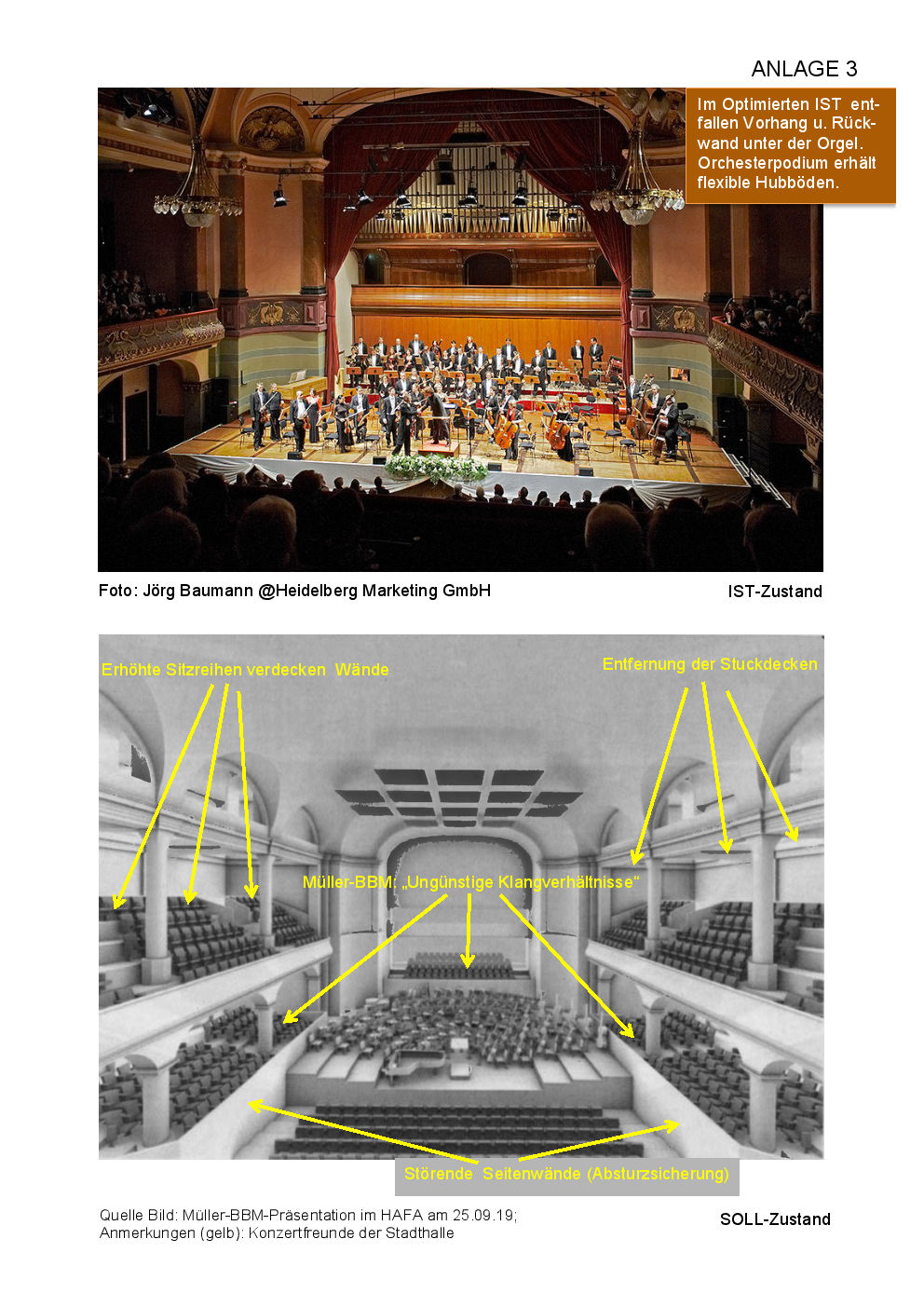 als Freunde der einzigartigen und denkmalgeschützten Heidelberger Stadthalle appellieren wir an alle Entscheider und Entscheidungsgremien, das Thema „Sanierung Stadthalle“ und hier vor allem die Ertüchtigung des Großen Saales sowie die Beseitigung des Rondells an der Ostseite der Stadthalle nochmals auf die Tagesordnung des Haupt- und Finanzausschusses zu setzen und neu zu beraten.